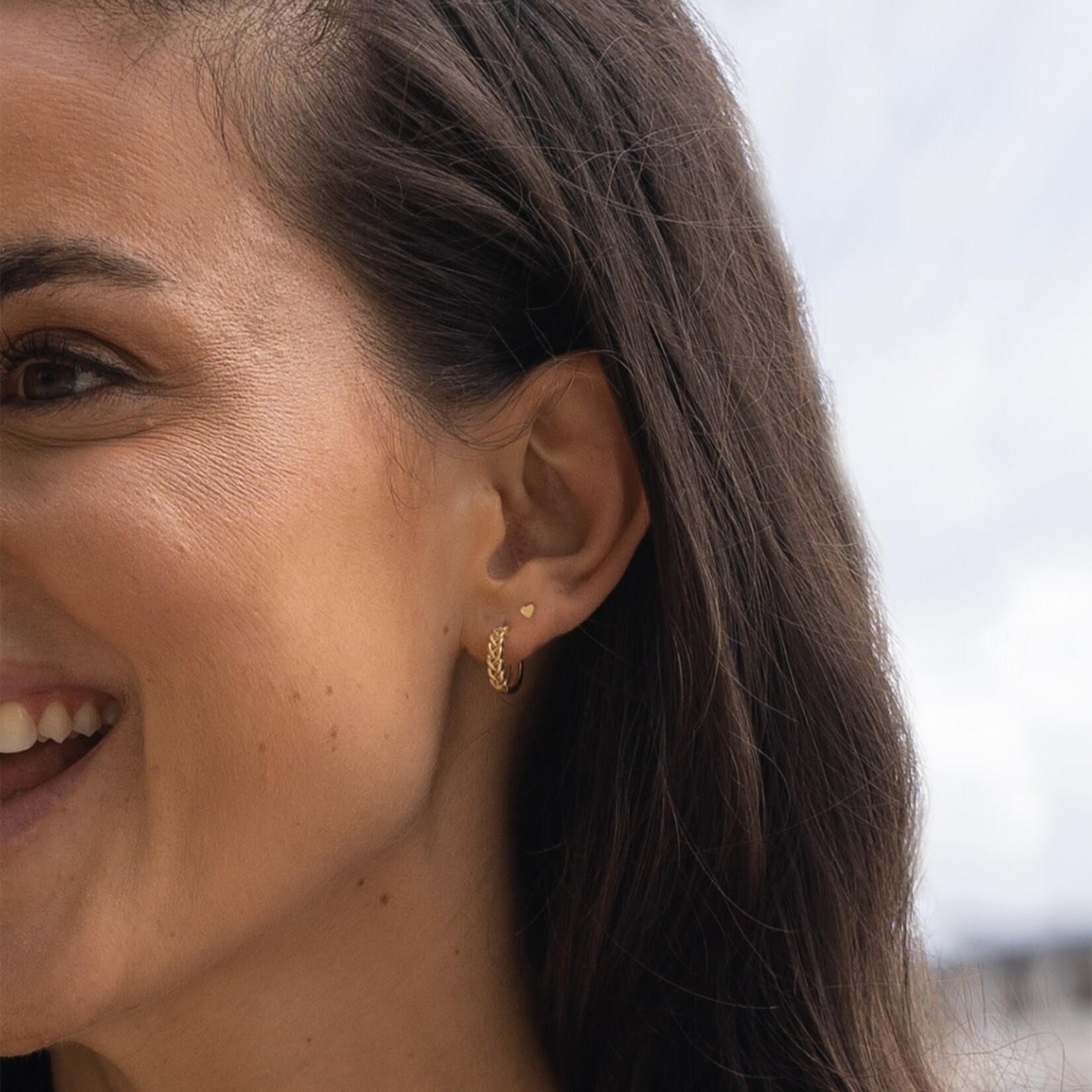 Massief 14 karaat geelgoud oorringen in gevlochten vorm, sluitend met een scharnier.